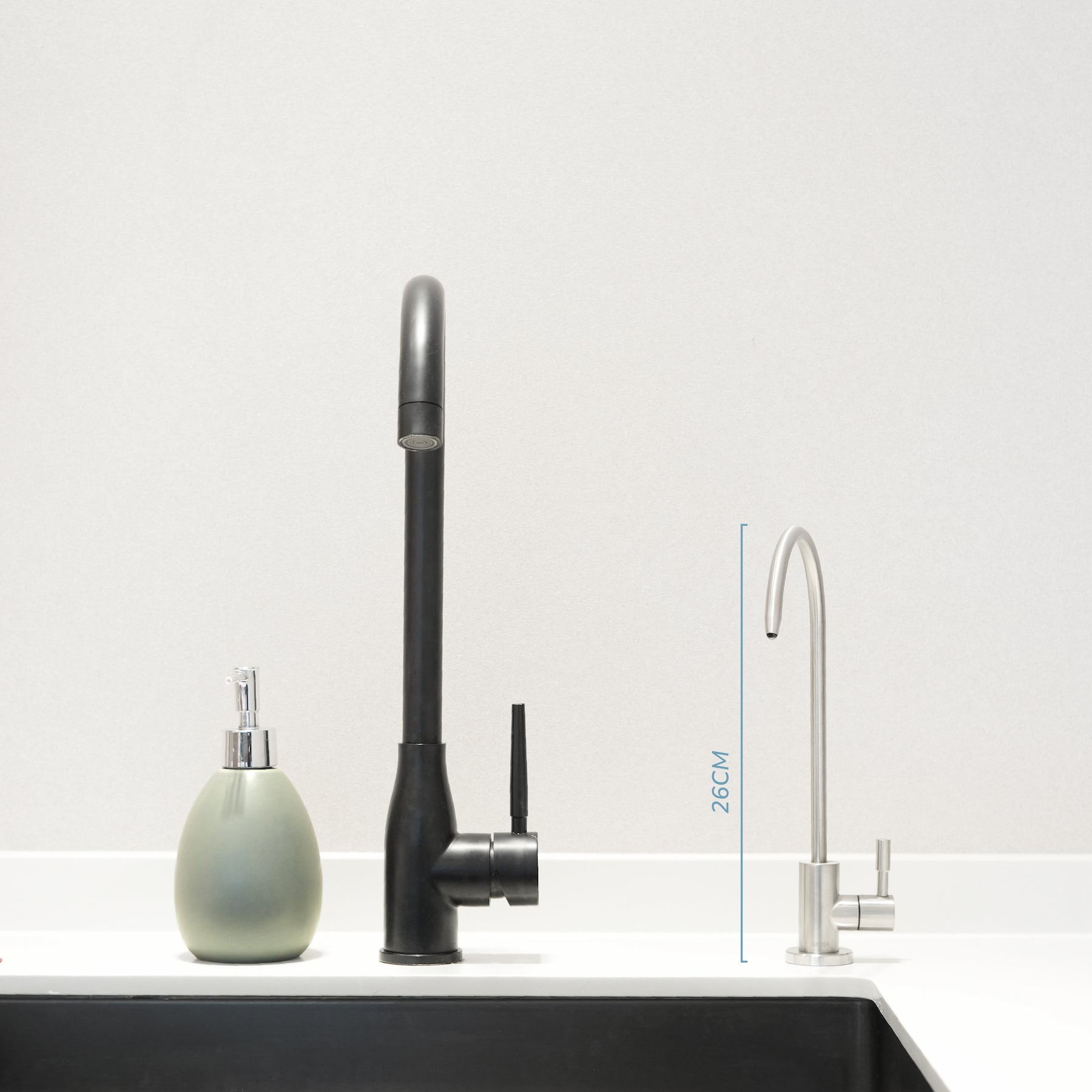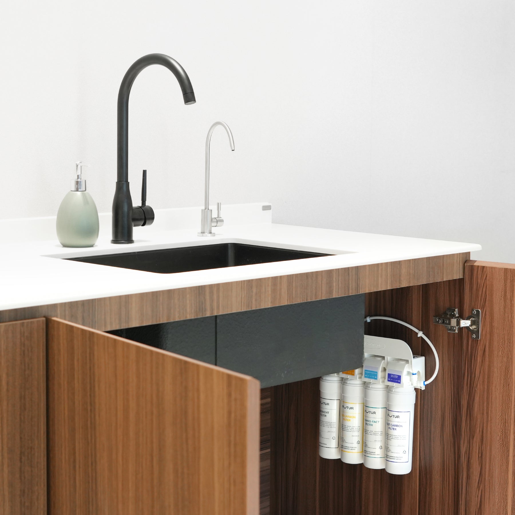Maximize your kitchen space without compromising on clean water. With a convenient miniature faucet on your countertop, the Undersink Water Filtration System offers a space-saving design that seamlessly integrates into any kitchen setup. Our professional installers ensure a neat installation, with the water filters mounted under the sink and the tubings neatly tucked within the cabinet. Enjoy a clean and organized kitchen, free from clutter, while having easy access to purified water.